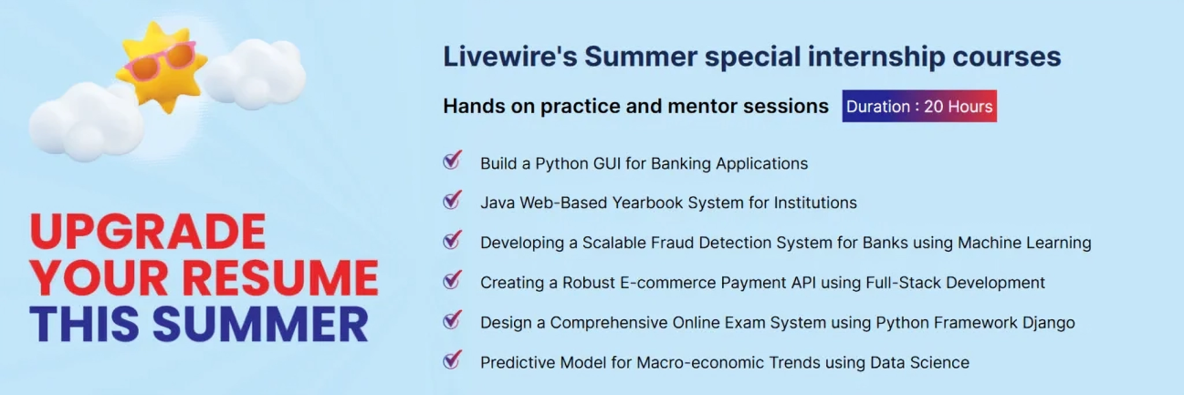 By enrolling in internship classes, students can enhance their resumes, acquire hands-on skills, and establish professional connections in their chosen field of study. Livewire provides these courses to students at an affordable fee, along with access to the latest tools and techniques used in the industry.